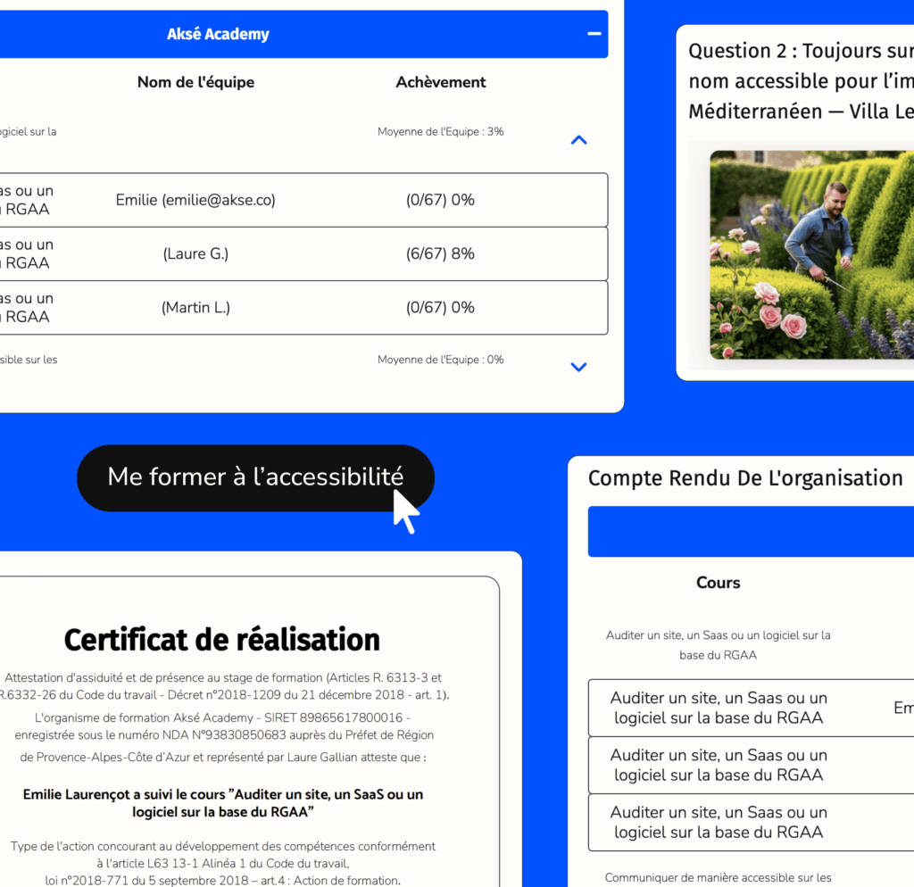 Utilisez Aksé Academy pour mettre en place un plan de formation en accessibilité numérique pour toute l’entreprise.